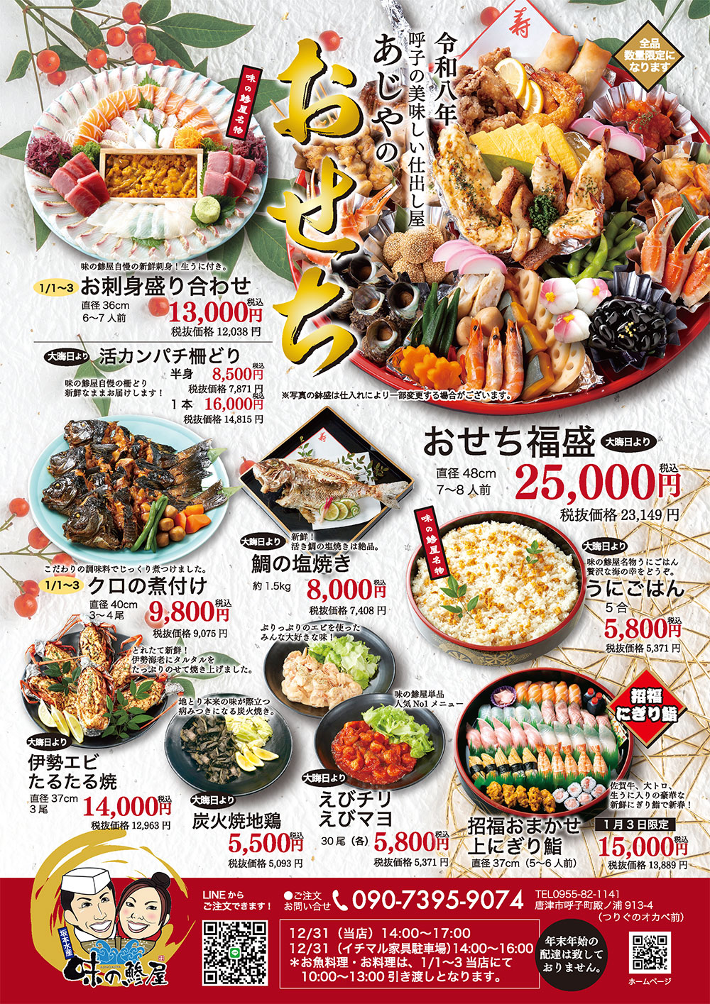 こんな年にしたいねと新年の晴れやかな団欒を、ぜひ鯵屋自慢の料理で囲んでください。